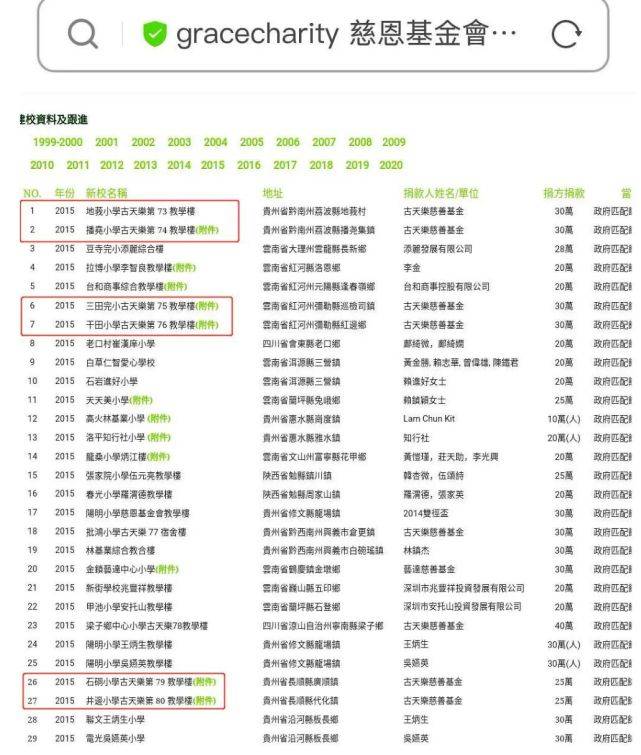卓伟这次无疑触犯了大多网友的底线,大家开始纷纷为古天乐鸣不平。此外,针对卓伟的爆料,网友们还在gracecharity慈善基金会中,查到仅2015年古天乐慈善基金会就捐建了6所学校。