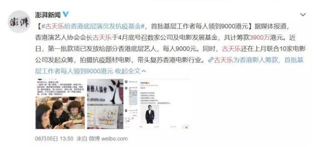 古天乐基金会于是给香港底层艺人发钱,每人9000元,为了让他们能在最艰难的时候撑过去。